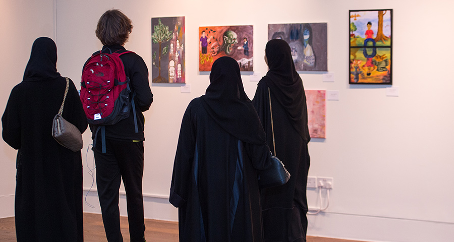 Khulood Al-Haroon and Noora Al-Shukri are both seniors in the Biological Sciences Program and co-founders of the CMU-Q Art Club. At the beginning of February, the Art Club hosted a two-week exhibition in the Qatar Foundation Student Center, open to everyone in Education City.