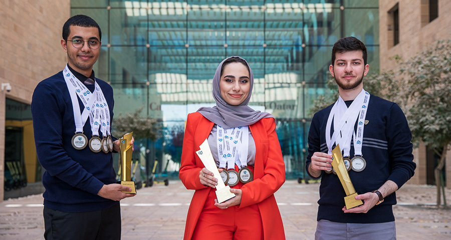 Rahaf Abutarbush, Ammar Karkour and Abdullah Shaar had a perfect record in league competitions this academic year, placing first in the Arabic National Universities League. In the championship final, they faced off against a team from Qatar University, and were ultimately victorious. This is the second consecutive year the team has won the Qatar national championship, and the second consecutive year that Shaar won best speaker.