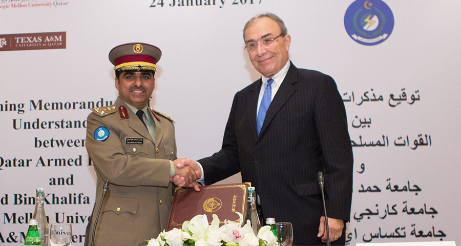 The new partnership will allow Carnegie Mellon Qatar to share expertise and scholarship, including executive leadership training, with the various departments of Qatar Armed Forces. The students and alumni of CMU-Q will benefit from internship, scholarship and employment opportunities with Qatar Armed Forces.