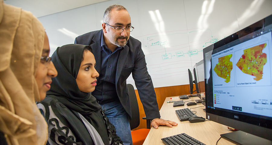 Aoun created the GIS course for exactly this reason: “I believe GIS is something that can be in high demand. As data becomes more public, it will unleash opportunities. A lot is happening in GIS in Qatar—topography, zoning, street numbers—but I want students to also explore thematic aspects that can have a potentially high impact on quality of life, such as health, education, and transport.”