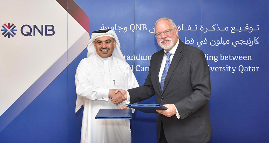 The partnership was signed by QNB Group CEO Ali Al Kuwari and Dean of Carnegie Mellon University in Qatar Michael Trick. It will include a wide range of fields, but in particular will focus on the utilization of any appropriate executive education programs offered by CMU-Q for QNB employees, cooperation in providing scholarships and internships for CMU-Q students, and encouraging CMU-Q students to engage in volunteer work during QNBs activities for community service in Qatar.