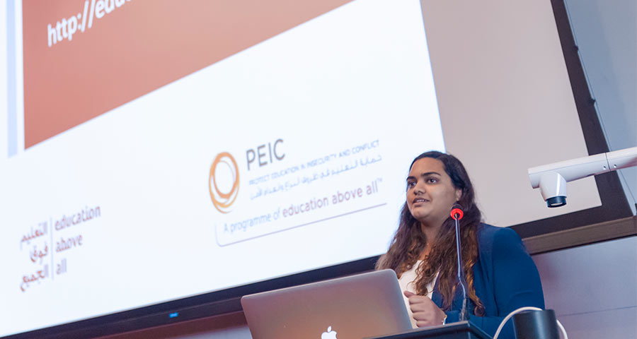 CMU-Q alumna Haya Thowfeek, who now works as an information management officer at PEIC, noted the need for quantitative and qualitative data about attacks on education. PEIC is currently working on a global data service that would collect this data and trigger early warnings of attacks.